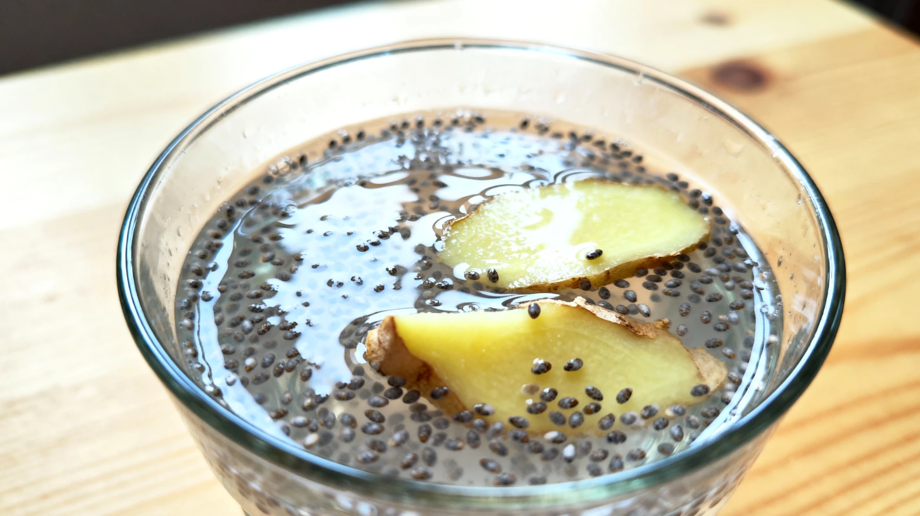 L’aggiunta di un cucchiaio di semi di chia, lasciati in ammollo per almeno 10 minuti, modifica la struttura della bevanda grazie alla formazione di un gel dovuto alle mucillagini, cioè fibre solubili che aumentano la viscosità del contenuto intestinale e possono avere effetti benefici sulla funzione intestinale e sul tempo di transito.
